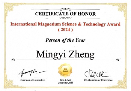 郑明毅教授荣获2024年度国际镁科学与技术奖励大会年度人物奖