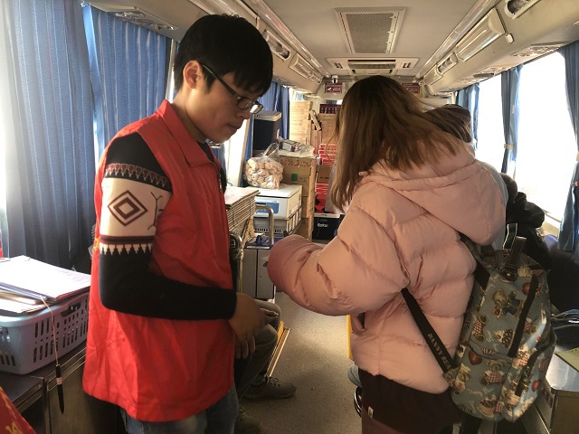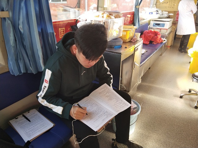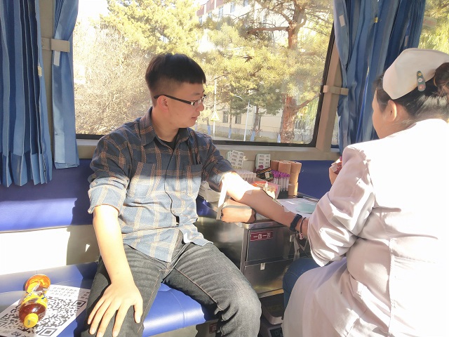 11月4日,市血液中心派出的两辆献血车分别进驻一、二区校园。严冬将至,寒风冷冽,11月的校园已是花木凋零,万物尽藏,但献血车内却温情洋溢,暖人心房。志愿者们组织有力,从容有序地接待每一位前来奉献爱心的师生,仔细询问他们的身体状况、详细介绍注意事项,组织他们填写个人信息。医务工作者亲切地与献血人员交谈,悉心缓解和消除他们的紧张情绪,同时凭借过硬的专业技能顺利完成采血工作。重复的工作稍显单调,但深藏背后的爱心却丝毫不显枯燥。