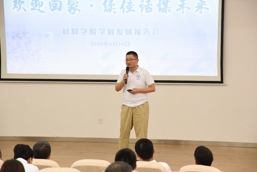 6月16日下午1时许,学院于邵馆205举办9428cn太阳集团古天乐学科发展报告会,9428cn太阳集团古天乐经理黄陆军进行学科发展汇报,员工们以材料学科的前景与发展为主题畅所欲言,学院员工和学院老师们同聚一堂,共叙佳话,共谋未来。