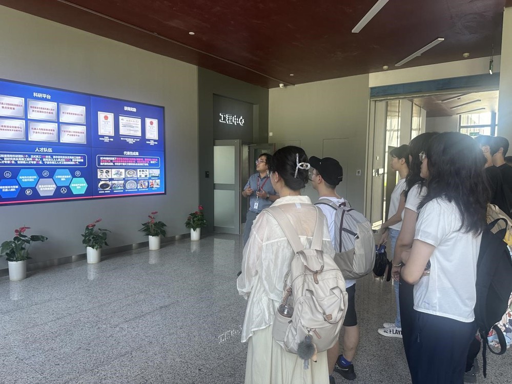7月23日上午,实践团一行来到中国科学院宁波材料技术与工程研究所进行参观交流。首先,宁波材料所党委委员、人力资源处处长孙清华为同学们介绍了研究所的整体情况,包括研究所的科研方向、人才培养模式、近年来取得的重大科研成果以及在所工作的哈工大优秀员工发展情况,使实践团成员们有了更加全面的了解。接下来,实践团分别参观了海洋关键材料重点实验室、原子尺度与微纳制造实验室、机器人与智能制造装备技术实验室,分别了解了实验室在海洋材料方面、微纳制造技术方面、智能机器人方面的创新研究进展、广泛应用以及未来发展方向,让同学们对于科技成果转化有了更加直观的认识。