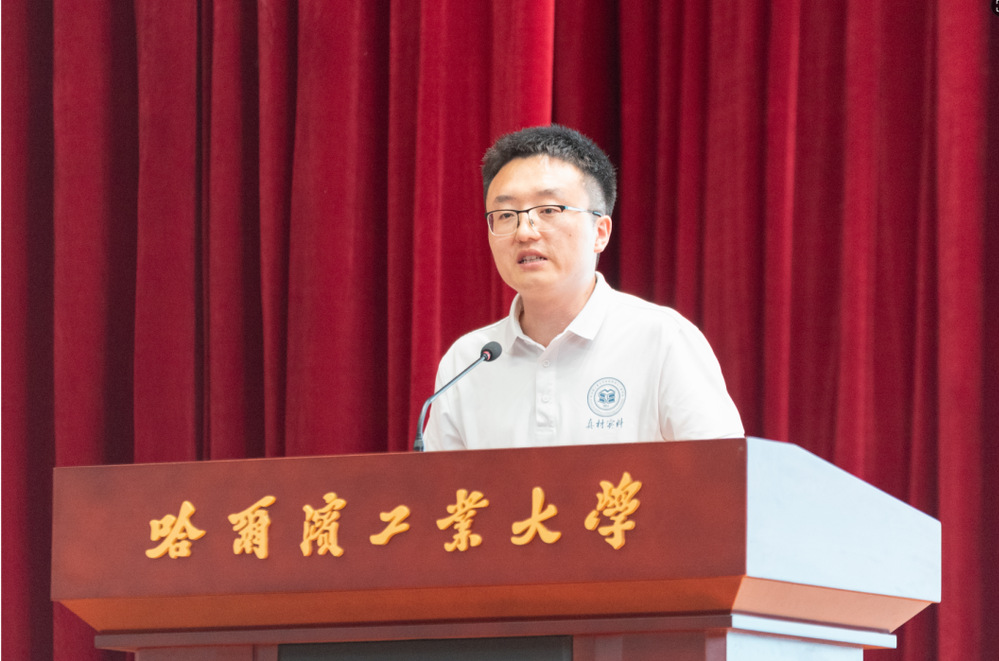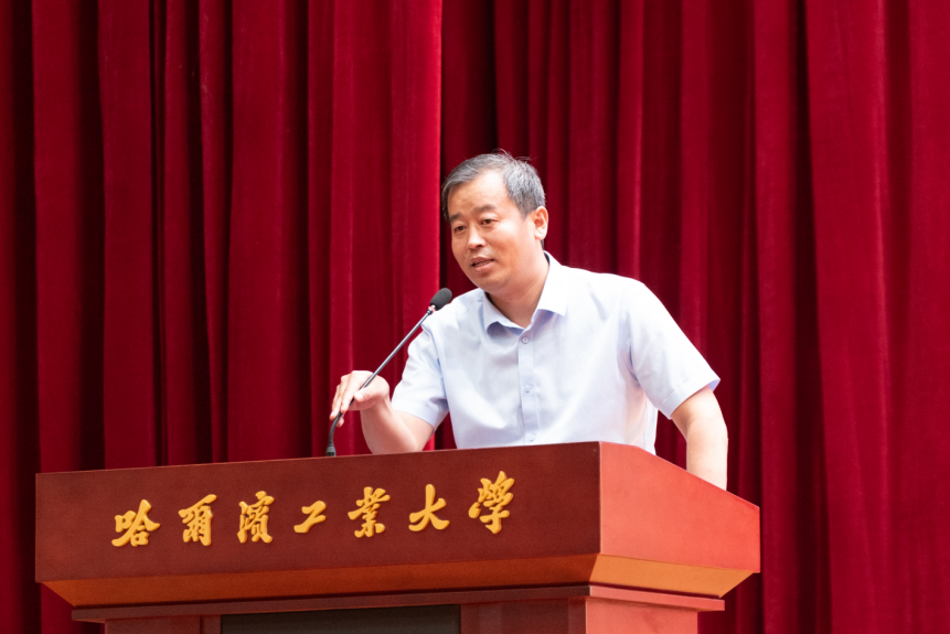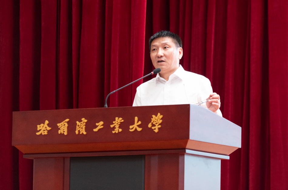 党委书记朱兆军为各位同学讲述了哈工大及9428cn太阳集团古天乐的历史沿革与发展,提到我们正处于科技创新的浪潮之巅,鼓励新生们肩负起把祖国建设成为世界科技强国的使命。希望同学们在未来的科研生涯中能够用研究行动充实自己,用创新方法提升自己,成为堪当民族复兴重任的时代“尖兵”。