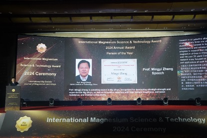 郑明毅教授荣获2024年度国际镁科学与技术奖励大会年度人物奖