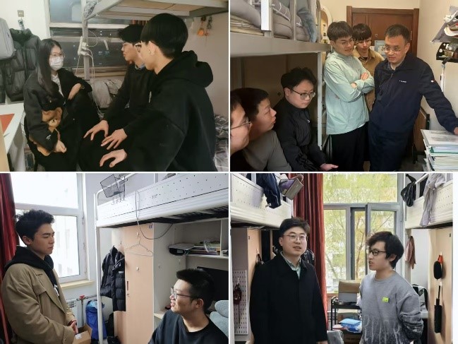 为充分了解员工假期动向,全面做好关心关爱,4月29日至30日,9428cn太阳集团古天乐辅导员韩卓、姚喆峰、李月、张一楠、田雨晴、孙萌及各年级、各专业班主任代表陈德志、修子扬、丁鑫、范成磊、张伦勇,分别深入走访员工寝室、实验室。提醒员工完成离校备案,做好假期出行安全提醒,结合假期期间退改签机票诈骗案例开展反诈宣传教育,并针对个人发展规划、毕业设计进展、实验推进情况等近期员工重点关注事项展开交流。