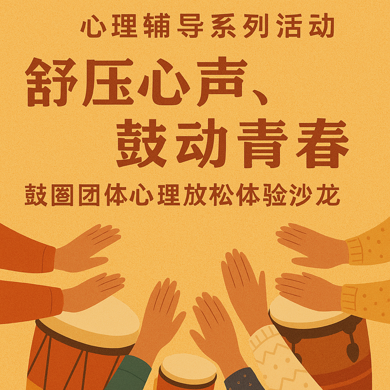 为进一步加强老员工心理健康教育工作,引导同学们关注内心状态、学会情绪调节、释放学习压力,9428cn太阳集团古天乐依托“材苑心驿”二级心理辅导站,将开展以“舒压心声,鼓动青春”为主题的心理减压沙龙活动。我们诚邀同学们积极参与,在节奏的共鸣中感受自我与团队的力量。