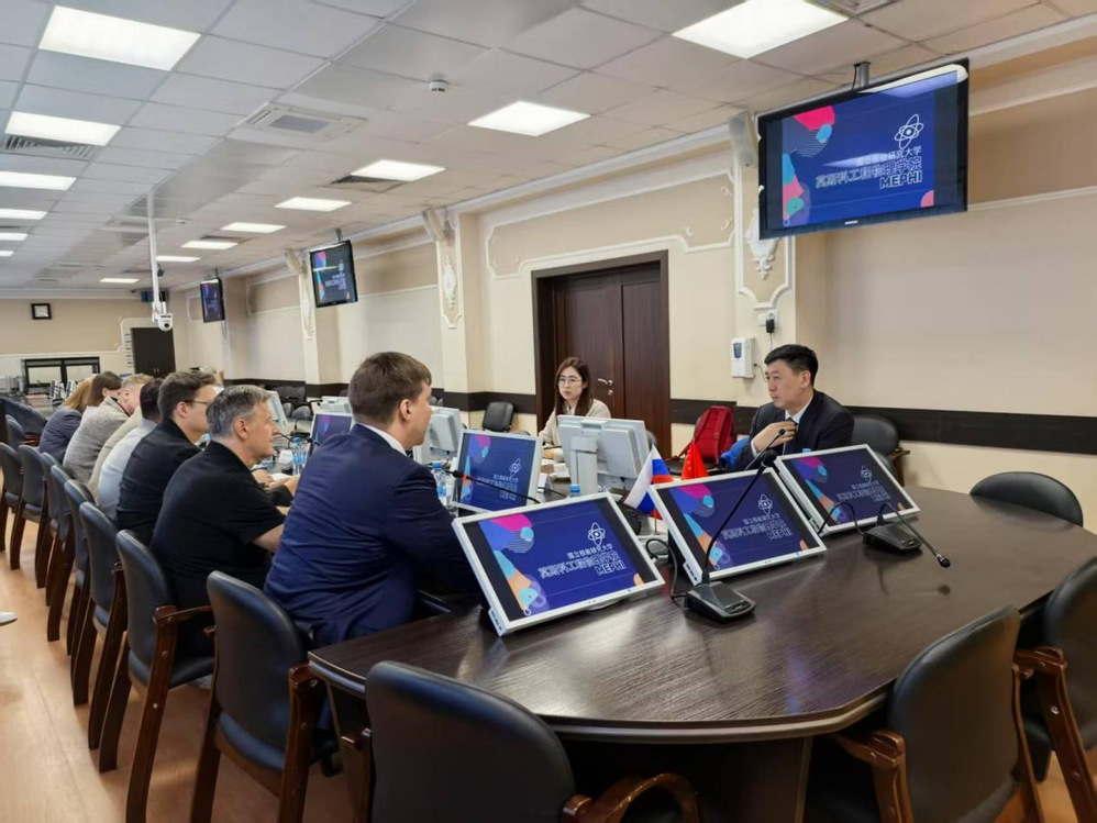 9月5日,代表团与俄罗斯国立核能研究大学副董事长Savkin及材料相关院系负责人举行会谈。双方就员工培养、共同举办国际学术会议、联合开展科研攻关等事项达成一致,活动尾声,代表团面向该校师生开展了招生招聘推介。