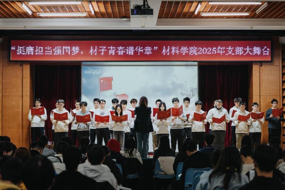 本次支部大舞台紧扣“青春”“家国”“未来”三大核心,以“青春启航,韶华如歌”“家国情怀,心之所向”“共创未来,明天更好”三个篇章层层递进,融合合唱、舞蹈、创意串烧、乐器演奏、诗歌朗诵等多元文艺形式,13个节目轮番登场,既展现了材子们的多才多艺,更诠释了“规格严格、功夫到家”的校训传承与“材料报国”的青春追求。