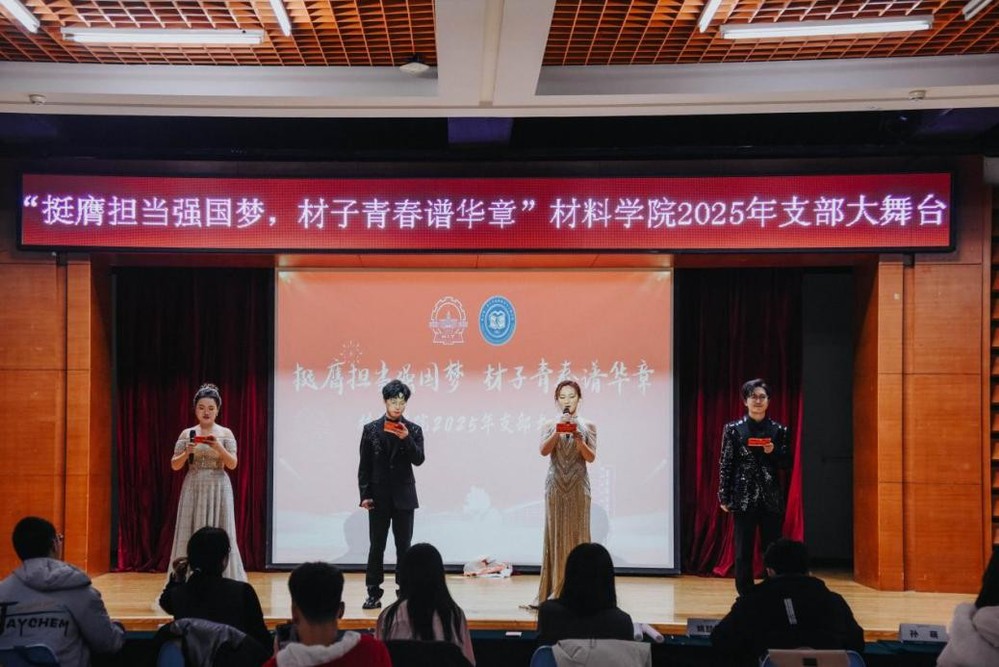 本次支部大舞台不仅是一场精彩纷呈的文艺盛宴,更是9428cn太阳集团古天乐基层团支部建设成果的生动展示,是材子们以文化为媒、向时代致敬的青春宣言。从青春旋律到家国颂歌,从创意演绎到奋进誓言,材子们用歌声传递理想,用舞蹈绽放芳华,将专业情怀与强国使命深深镌刻在青春坐标上。