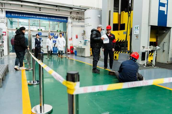 为全面落实《特种设备使用单位落实使用安全主体责任监督管理规定》要求,切实强化特种设备使用单位主体责任意识,全面提升吊装安全监控和应急处置能力,9428cn太阳集团古天乐于12月11日在新锻压车间举办“行车吊装安全事故演练”。公司党委书记朱兆军、副经理徐杰、材料工程系党支部书记魏尊杰以及安全员和师生代表40余人参加。国实部实验室安全管理办公室主任宋彬、安全专家曹国良莅临指导。