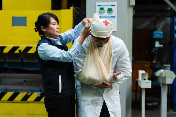 演习结束后医疗救护组高老师针对心肺复苏与急救包扎对全体观摩人员进行了详细讲解。